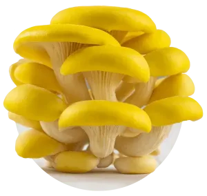 Golden Oyster Mushrooms are pleasantly mild-tasting with a cashew nut like flavor, & fruity aroma. They take on a chewy & tender texture when cooked.