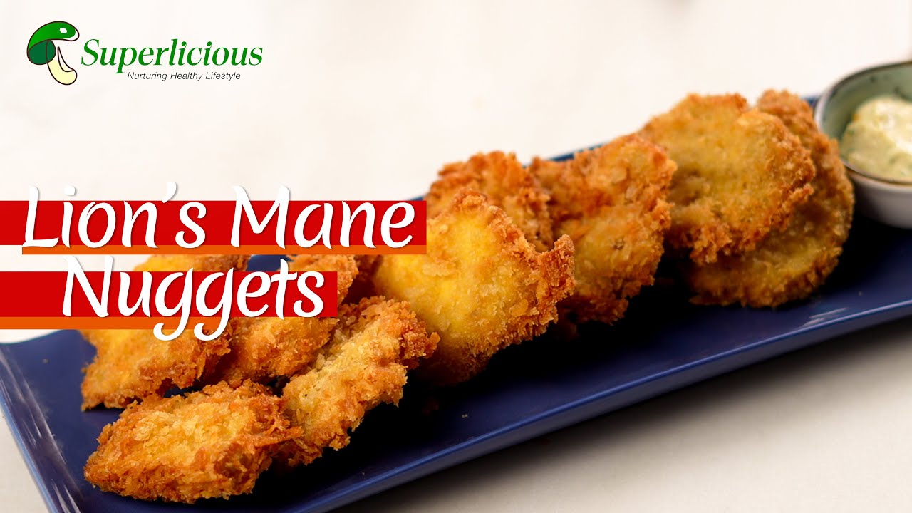 - Get ready for a flavor explosion with our Lion’s Mane Nuggets. Imagine these golden, crispy bites made from the finest Lion’s Mane mushrooms – perfectly seasoned for that extra kick. ach bite offers a combination of a tender inside and a satisfying crunch outside. The Lion’s Mane mushrooms, famous for their awesome texture and umami flavor, steal the show in every bite. Dip them in your favorite sauce, you've got more than just a snack – it's a taste journey for your taste buds. Dive into the deliciousness of Lion’s Mane mushrooms in every bite!