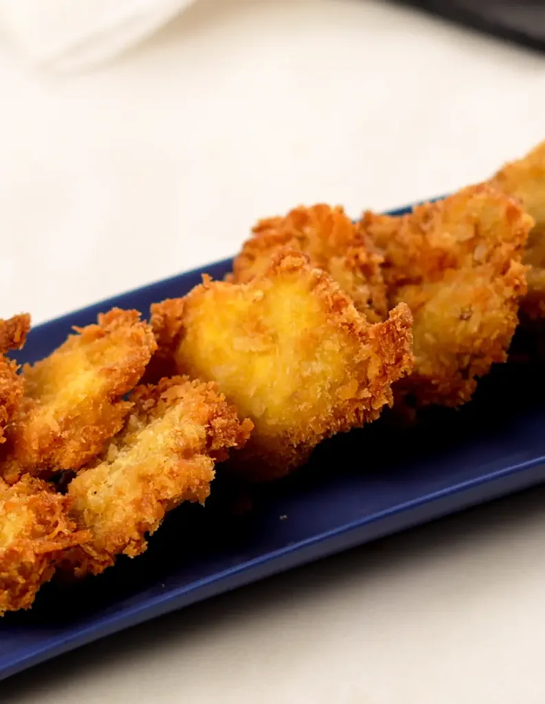 Carefully take out golden brown Lion's Mane nuggets and serve them with Tartar sauce