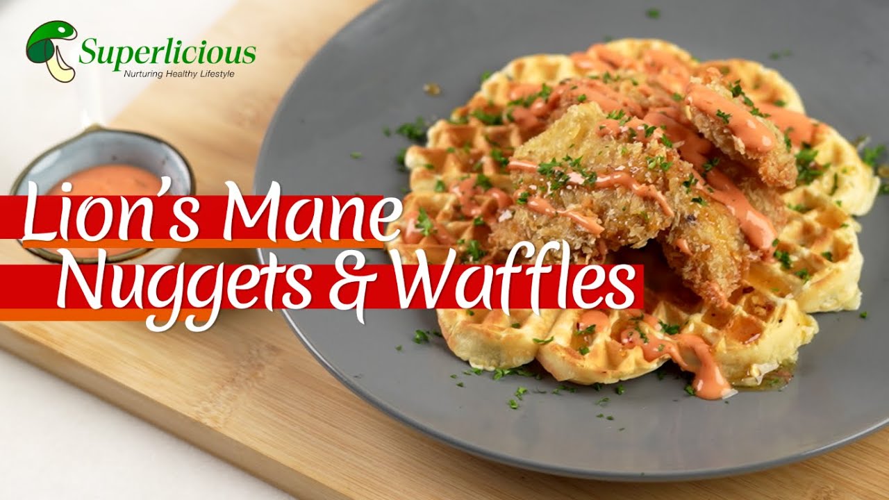 Indulge in something special with our Lion’s Mane Mushroom Nuggets paired perfectly with fluffy golden waffles. Enjoy the expertly seasoned blend of crispy and tender goodness in each bite. It's a delightful twist on a classic pairing that's sure to hit the spot!