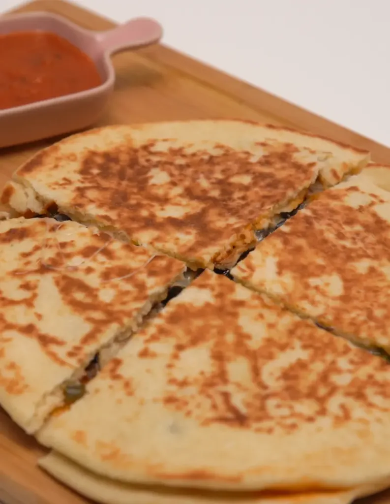 Spread pizza sauce, mushroom filling, and cheese on one half of each flattened dough circle. Fold over and seal edges.