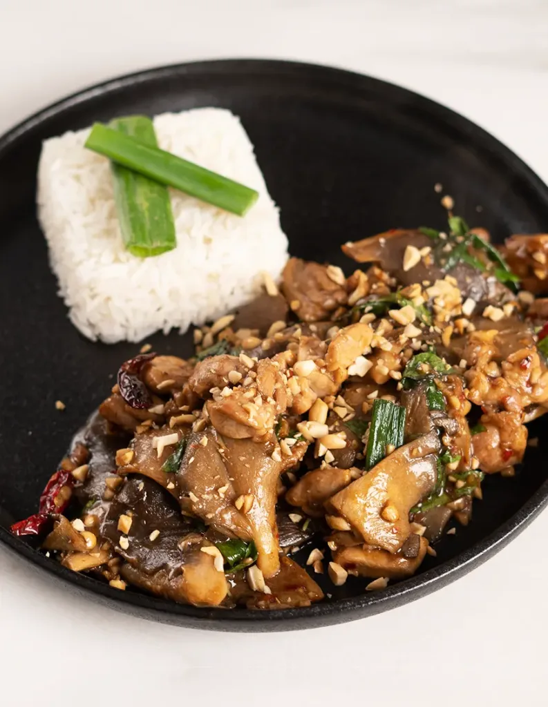 Experience the exquisite fusion of flavors with our Thai Basil Chicken featuring the robust umami goodness of Phoenix Oyster Mushroom. Succulent chicken meets the bold mushroom umami, complemented by the aromatic Thai basil. This delightful blend, served over steamed rice, promises a culinary journey that tantalizes your taste buds. Unveil the richness of textures and tastes in every bite—Thai perfection awaits!