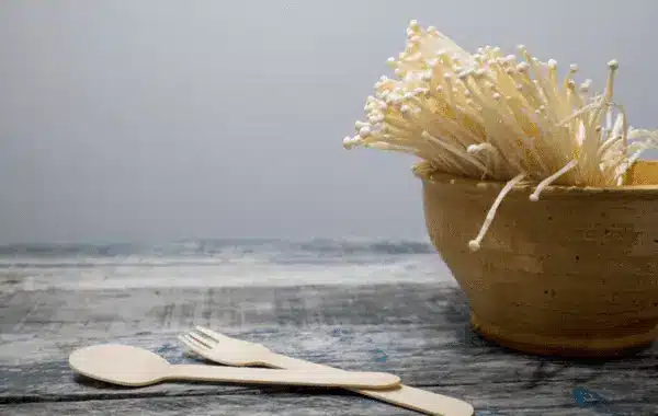 Since dainty, thin enoki mushrooms only take 1-2 minutes to cook and have a very mild taste, it is a perfect mushroom that absorbs all the delicious flavors of its surrounding ingredients, especially so in a side dish such as a salad, or when sauteed or steamed.